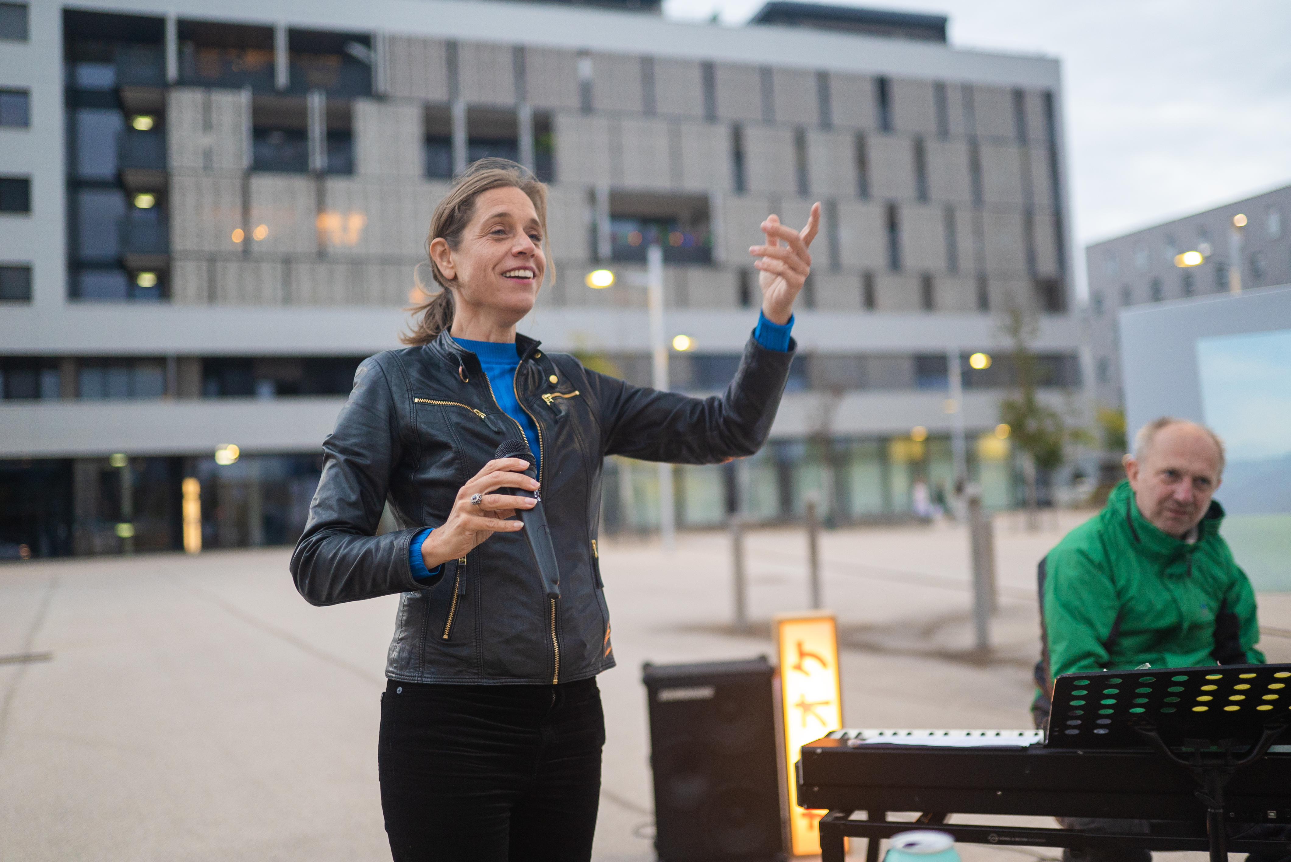 Um die Brücke zwischen Mythos und Realität zu schlagen und einem noch unbeschriebenen Platz Geschichte einzuhauchen, veranstalteten Ana Mumladze Detering, Fabian Ritzi und Sophie Bösker das „Sound of Karaoke Festival“. Durch gemeinsames Jodeln, Singen und Lachen entstand auf dem Platz etwas Neues, das über die Grenzen von Mythos und Alltagsleere hinausgeht – ein interkulturelles Zusammensein.
