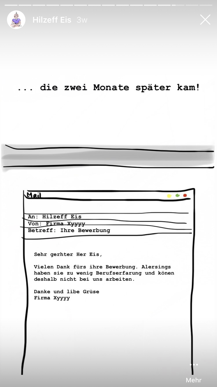 Hilzeff Eis würde gerne arbeiten, doch als Berufseinsteiger ohne Berufserfahrung hat er große Schwierigkeiten einen Job zu bekommen. Und so beginnt der Teufelskreis...