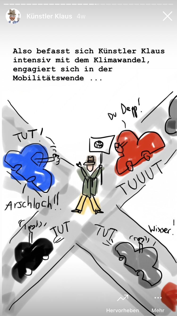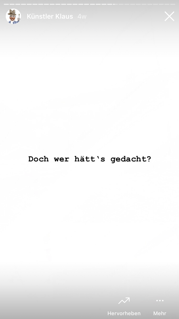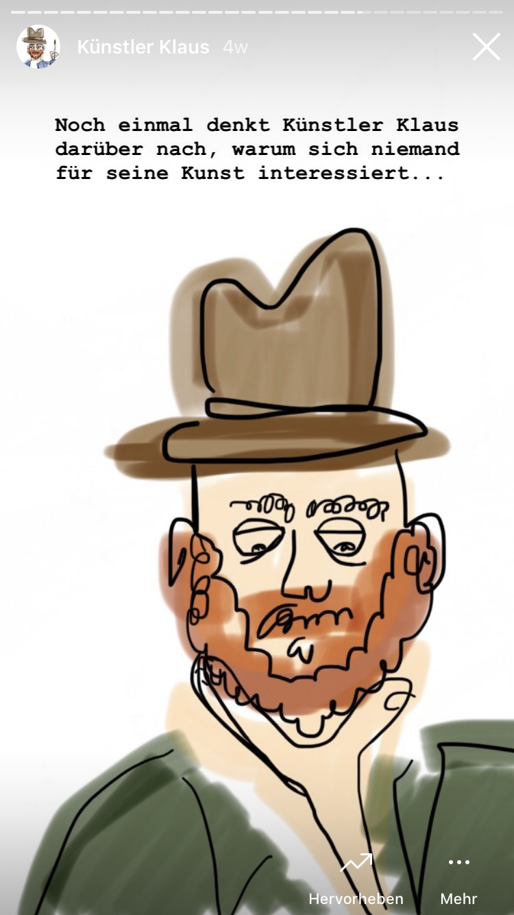 Künstler Klaus macht Kunst. Politisch, gesellschaftlich und ökologisch relevante Kunst. Doch das interessiert kein Schwein. Also denkt sich Künstler Klaus etwas aus...