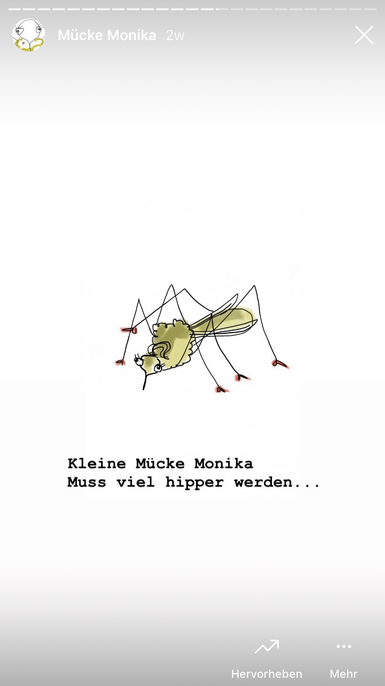 Die kleine Mücke Monika wäre gerne Insta-Star, doch hat nicht viele Follower...